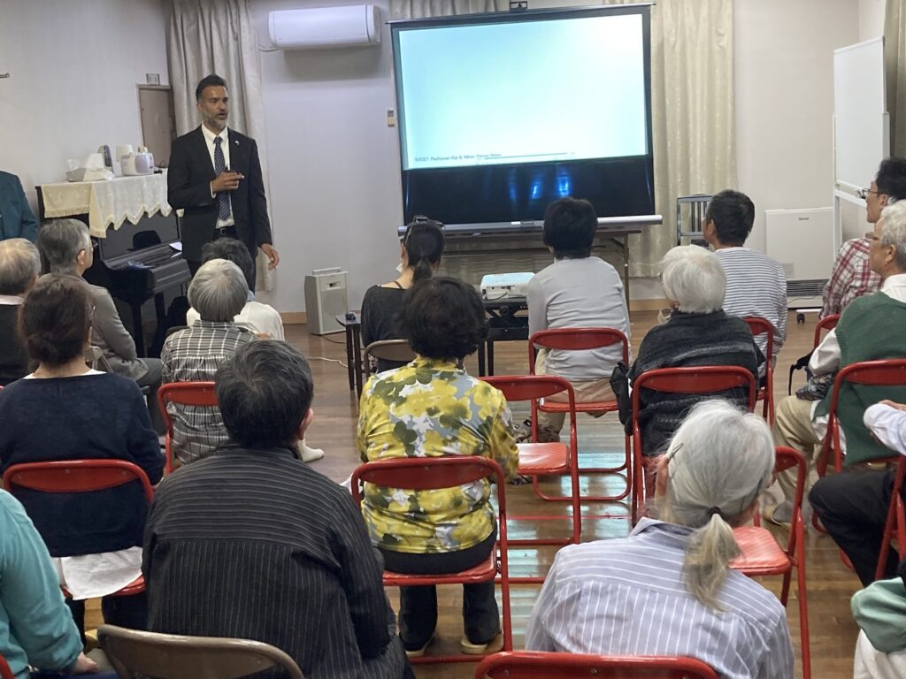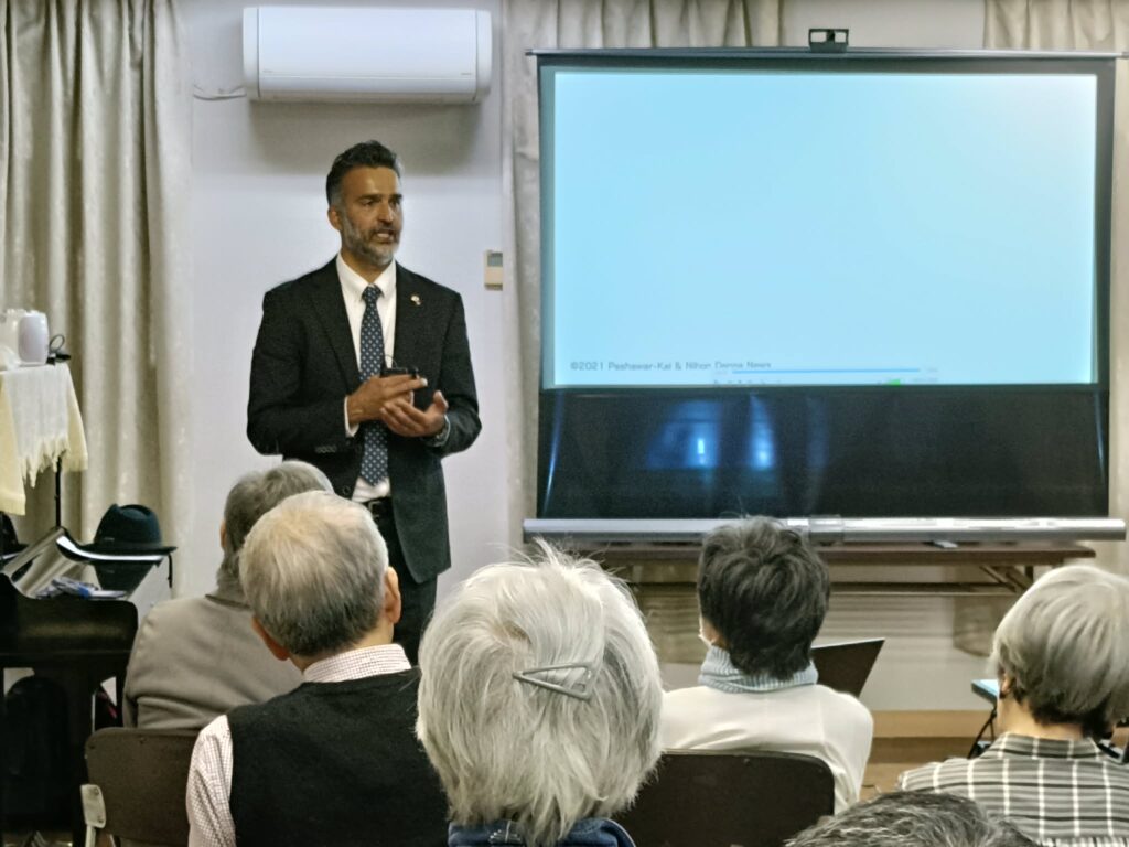当日、合同会社 AFGAN SAFFRON 代表のバブリさんという元アフガン大使館員だった方が挨拶をしました。また、アフガニスタンの現状について質問を受けてお話をしていただきました。
