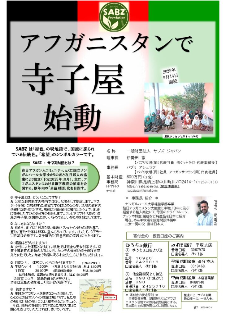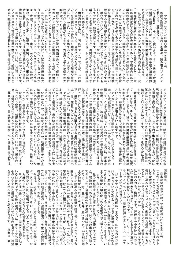 バブリ アシュラフさんと同行された伊勢田さんの活動について紹介をいたします。アフガニスタンでは、女子教育をこれから広げていこうということをされています。趣旨にご賛同の方は、ぜひ寄付もよろしくお願いいたします。